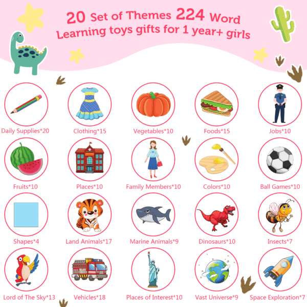 Cartes flash parlantes dinosaures améliorées Richgv – Un jouet d’apprentissage Montessori amusant pour les enfants ! Parfait pour les filles et les garçons de 2 à 6 ans , ce jouet éducatif interactif rend l’apprentissage des mots fréquents, des couleurs, des animaux et des faits amusants passionnant et captivant